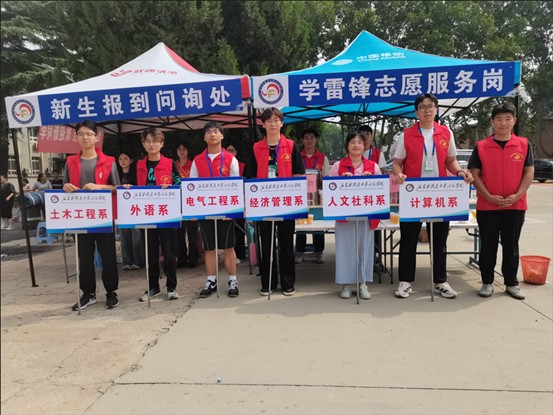 9月10日清晨,学院门口的迎新拱门、指引牌早已搭建完毕,志愿者们身着统一服装,提前在车站、校门口、报到处等关键点位就位。他们主动接过新生的行李,耐心引导办理报到手续,详细解答关于宿舍安排、课程设置等疑问,用真诚的笑容和热情的服务,让初来乍到的新生及家长感受到家的温暖。