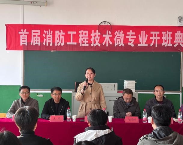 典礼上,陈佩寒发表了致辞。开设“消防工程技术”微专业是学院深化教育教学改革、推进“新工科”建设的重要一环,是学院优化人才培养体系的一次务实创新,旨在精准对接社会对消防安全人才的迫切需求,为学有余力的学生拓宽职业发展路径。