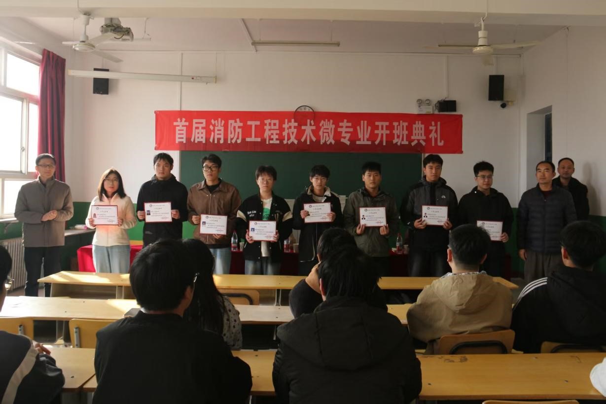 陈瑞与甄世涛共同为首届学员颁发了《微专业入学通知书》。简短的开班典礼,承载着学院对学生未来发展的深切期望。首届“消防工程技术”微专业的启动,不仅是一个新项目的开始,更是学院服务学生成长、推动产教融合的切实一步,为学子们提升综合竞争力开辟了新的通道。