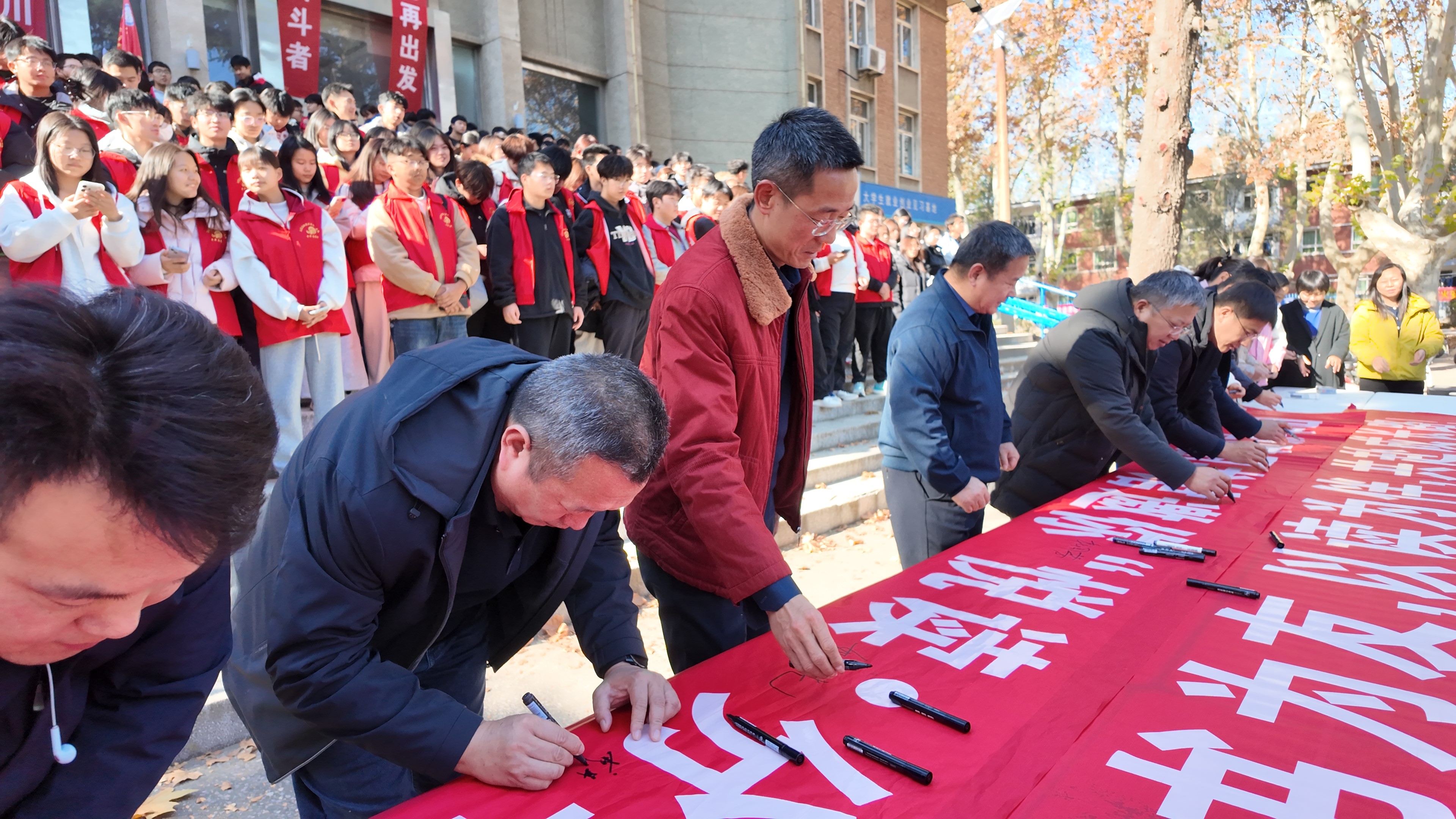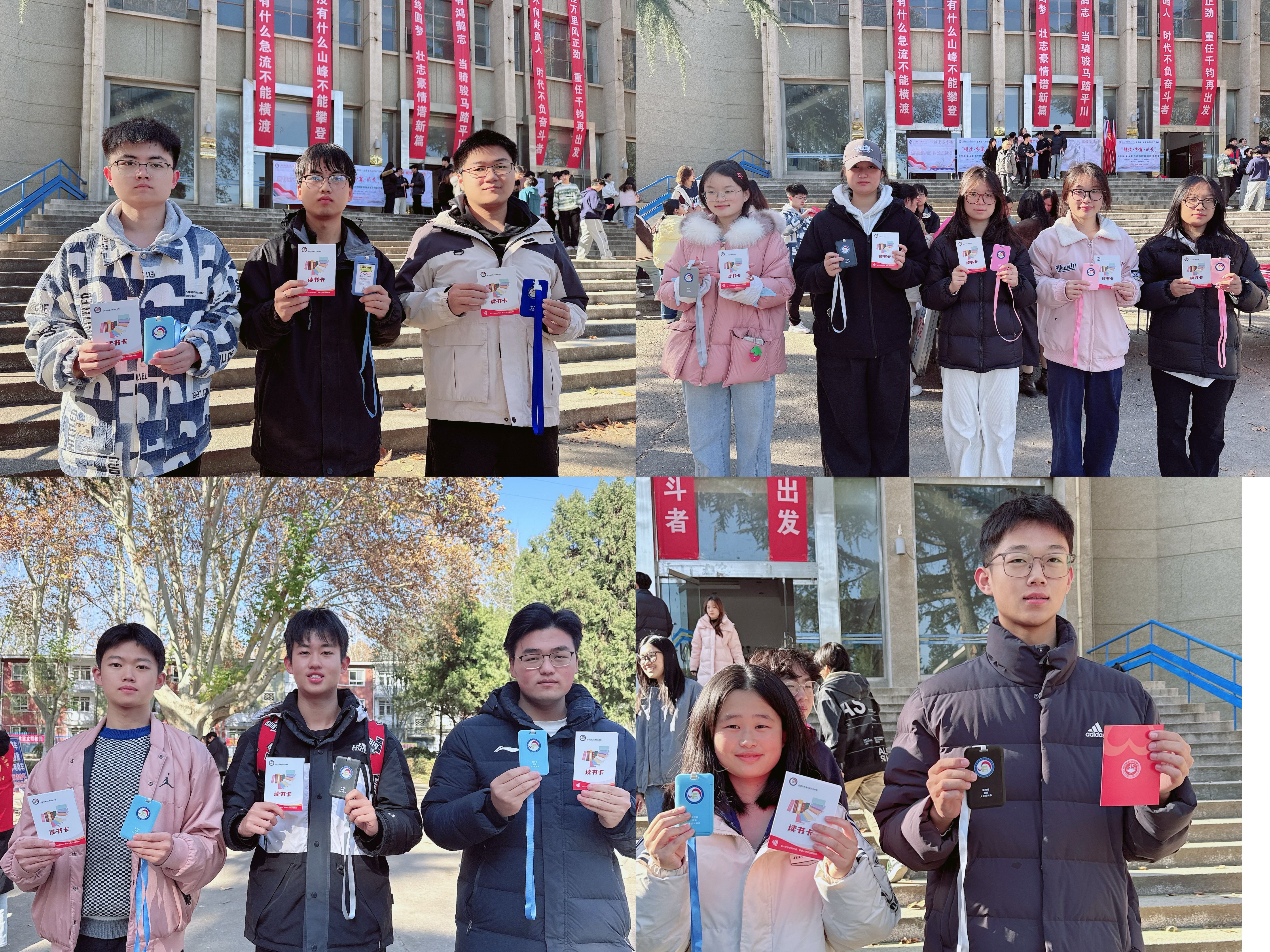 活动充满了感召力,以“放下手机,爱上阅读”为口号,旨在利用馆藏图书与期刊资源,培养读者深度阅读与碎片化阅读相结合的习惯。现场设置的巨型签名条幅成为焦点。姚道先、戎进通、杜国芳与主办单位负责人一同在活动条幅上郑重签名并与在场师生合影留念,为此次为期一个月的阅读推广活动拉开序幕。同学们踊跃参与,在条幅上留下自己的名字,开启一段个性化的阅读探索之旅。现场工作人员为参与学生发放了活动专属《读书卡》与校园卡卡套。