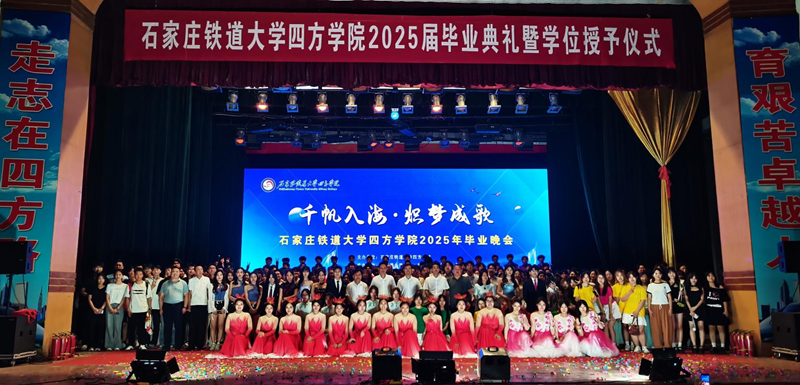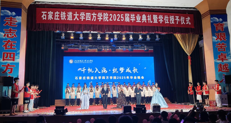 2025年5月27日,四方学院南校区大礼堂内灯光璀璨、座无虚席,2025届主题毕业晚会在这里隆重举行,石家庄铁道大学党委常委﹑副校长﹑四方学院理事会理事长张建江、四方学院理事会任立新、李素英,学院领导班子成员与现场毕业生共同观看了演出,晚会以三大篇章串联起学子们的成长记忆与未来憧憬,通过歌舞、武术、魔术、民乐等多元艺术形式,展现了四方学子朝气蓬勃的精神风貌。